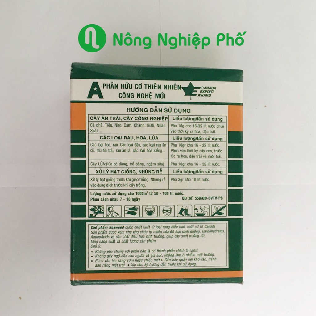 Phân bón lá hữu cơ được chiết xuất từ rong biển, kích thích tăng trưởng, cung cấp dinh dưỡng đa lượng NPK hữu cơ, trung vi lượng, các acid amin và các hormon kích thích tăng trưởng cho cây trồng.Sản phẩm được xem như kho chứa tự nhiên của 60 loại dinh dưỡng, Carbonhydrates, Aminoacids và các chất điều hòa sinh trưởng.