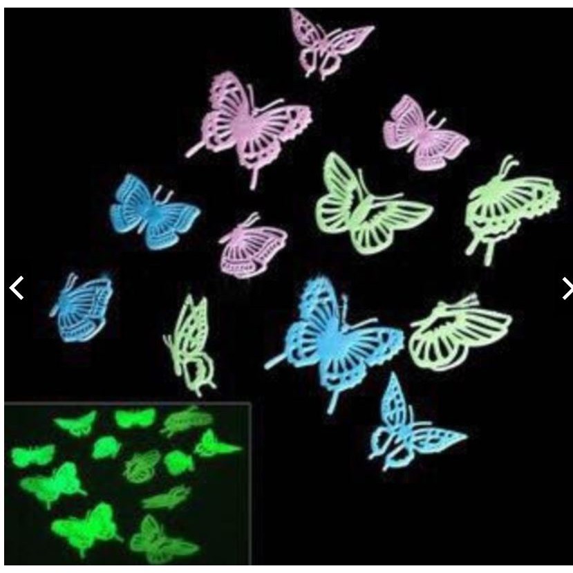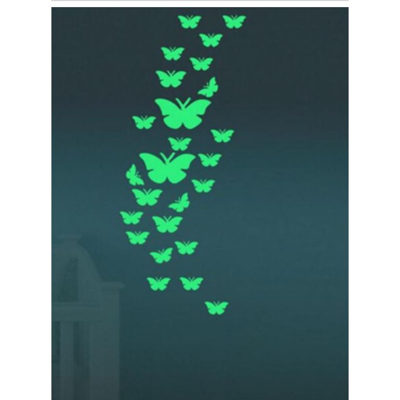 Hướng dẫn sử dụng : trước khi đem dán bạn nên đem phơi sáng từ 30 phút tới 2h đồng hồ. Được hấp thụ ánh sáng, những con bướm sẽ phát sáng lung linh mờ ảo trong đêm tối. Vô cùng đẹp mắt và thú vị.- sản phẩm gồm : 12 bướm có kích thước màu sắc , hình dáng khác nhau.