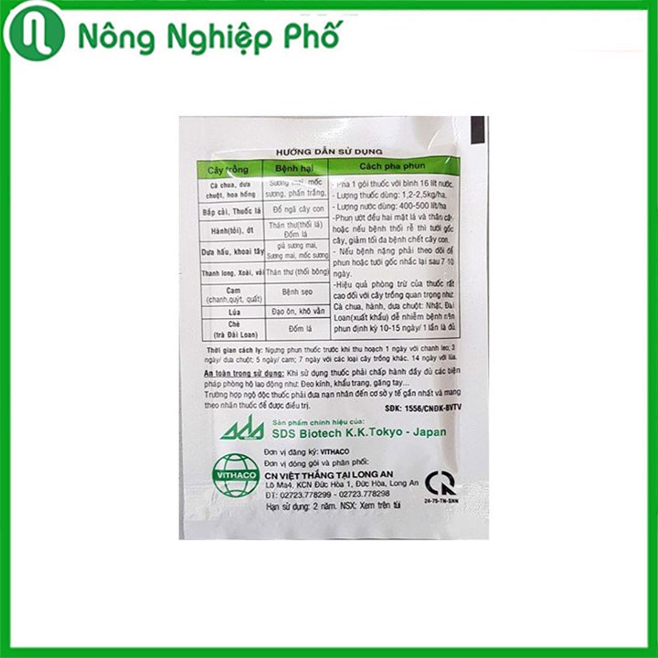 Mô tả:DACONIL 75WPXuất xứ: Sản phẩm chính hiệu của SDS Biotech K.K.Tokyo - Japan.