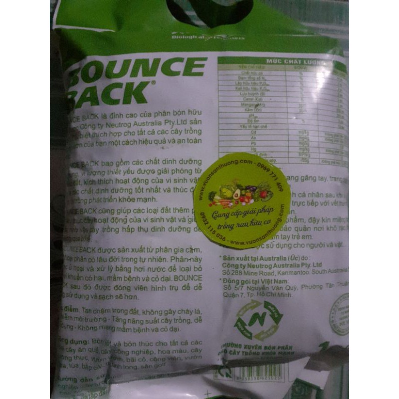 Nhà cửa & Đời sống > Làm vườn > Phân bón || Gói 1kg Phân Hữu Cơ Đậm Đặc Dạng Viên Của Úc Bounce Back BbCòn hàng