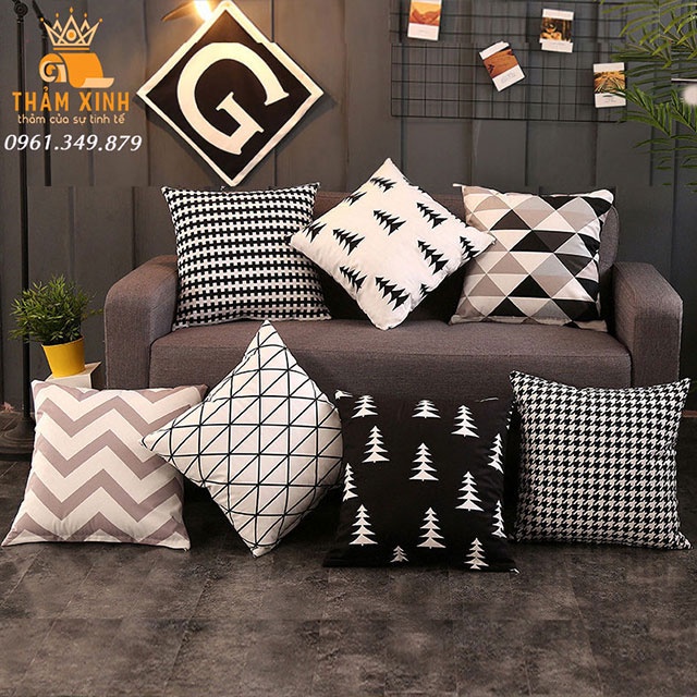 - Gối có họa tiết đơn giãn theo phong cách Bắc Âu, đem đến sự sang trọng, tinh tế.