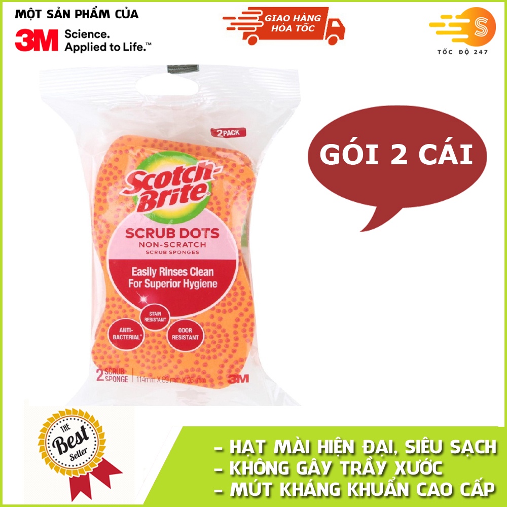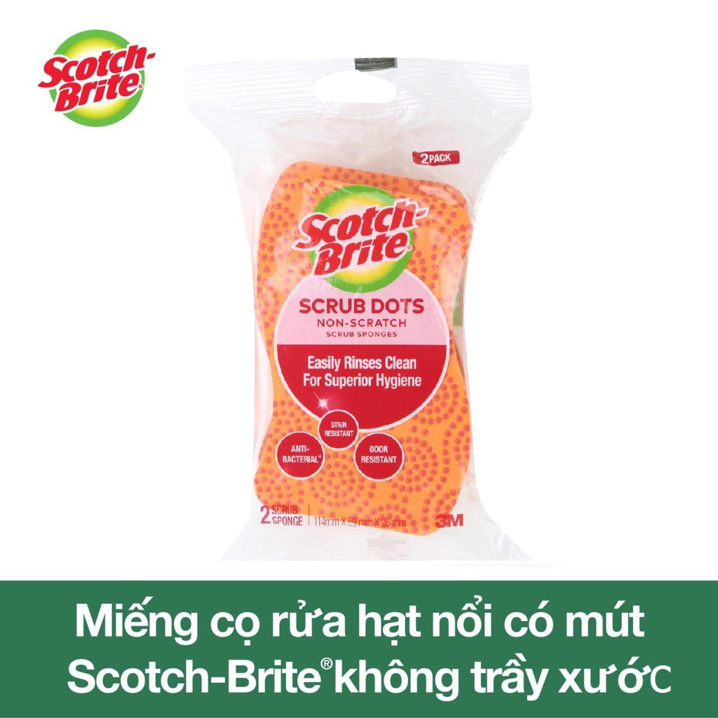 Tên sản phẩm: Gói 2 miếng rửa chén hạt nổi siêu sạch không trầy xước Scotch-Brite 3M CR-HNKT