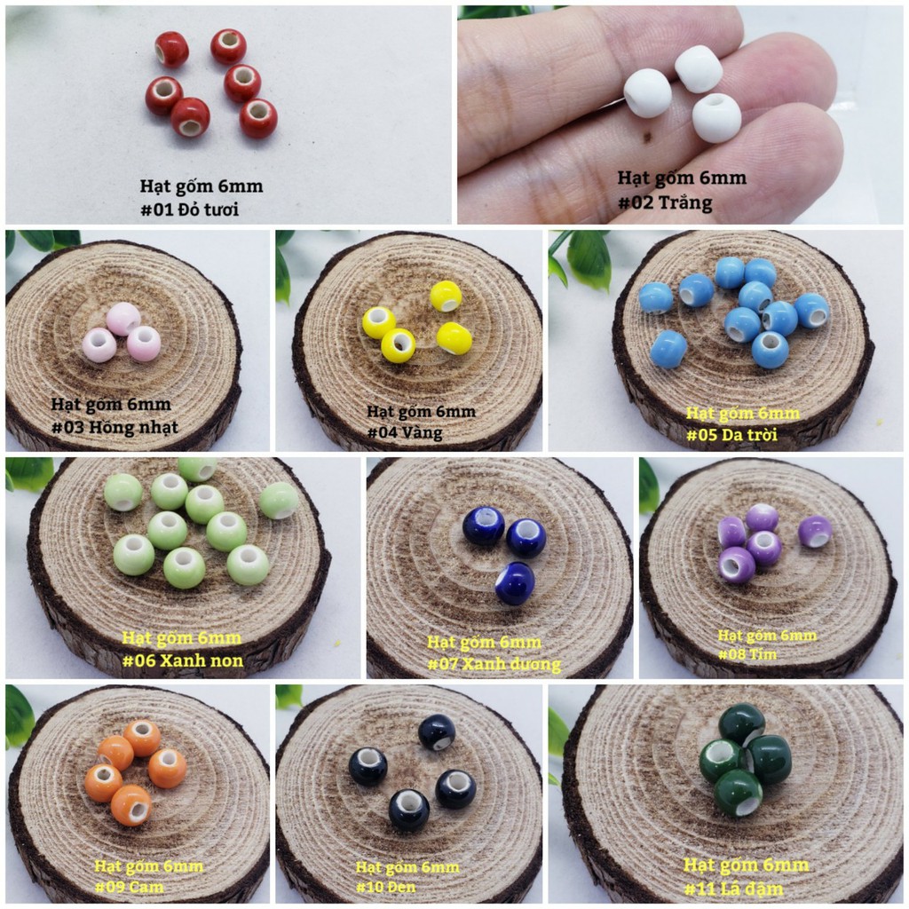 Giới thiệu Gói 20 hạt gốm 6mm xâu làm vòng tay, vòng cổ handmade