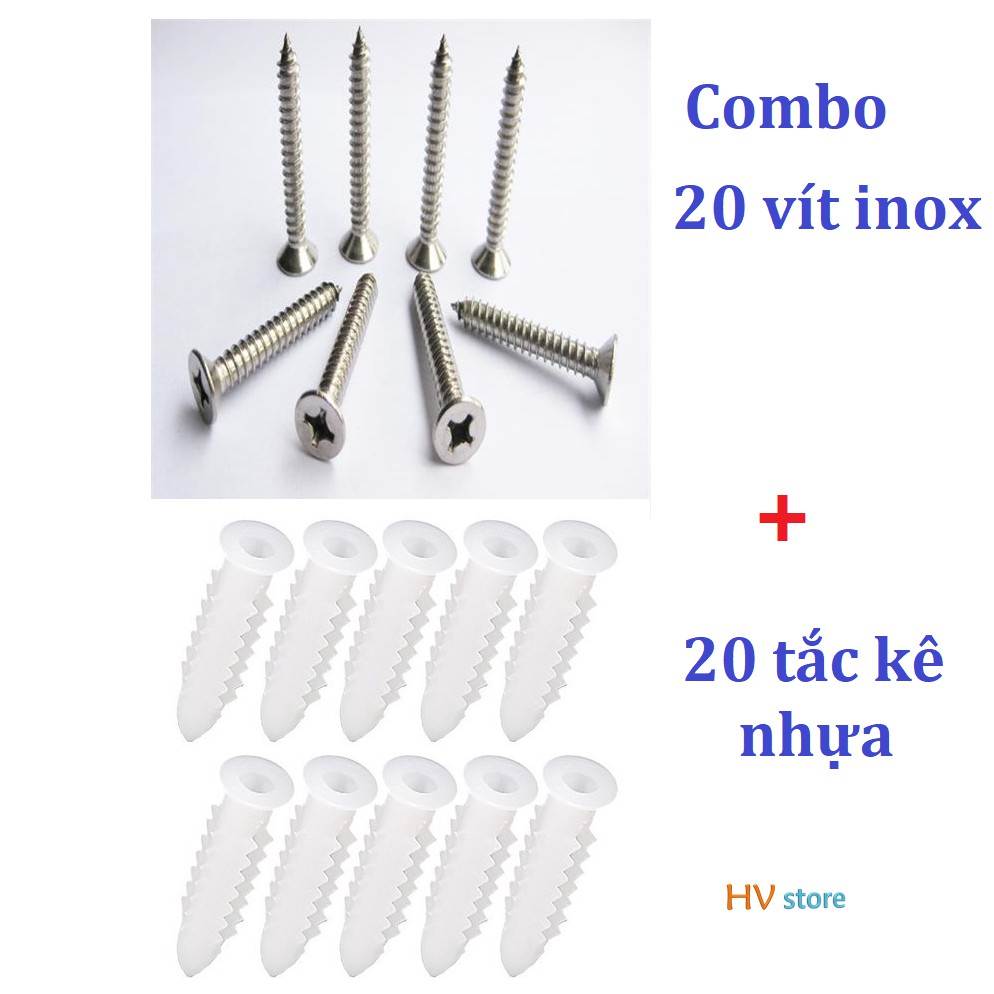 Nhà cửa & Đời sống > Dụng cụ nhà bếp > Khác || Gói 20 vít chìm inox 304 và 20 tắc kê nhựa các cỡCòn hàng
