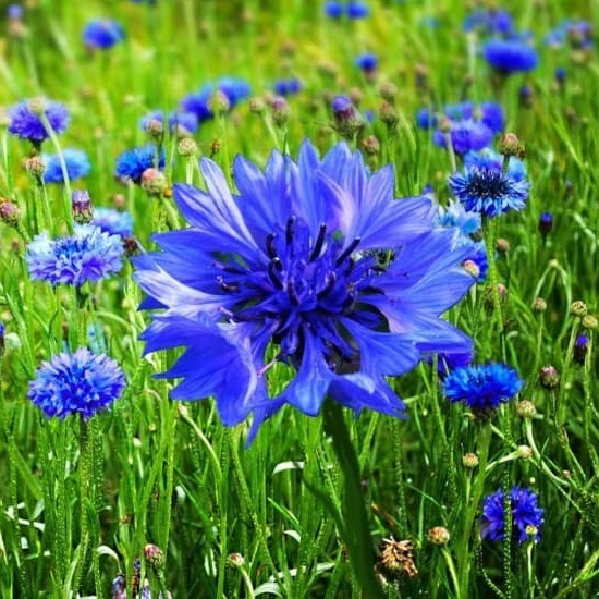 Hoa Trúc Mai - Xanh Blue 70cm (Centaurea cyanus) thân cây cao 70 - 100cm. có bông xanh đậm dùng làm hoa cắt cắm rất tuyệt, hoặc hoa bìa vườn