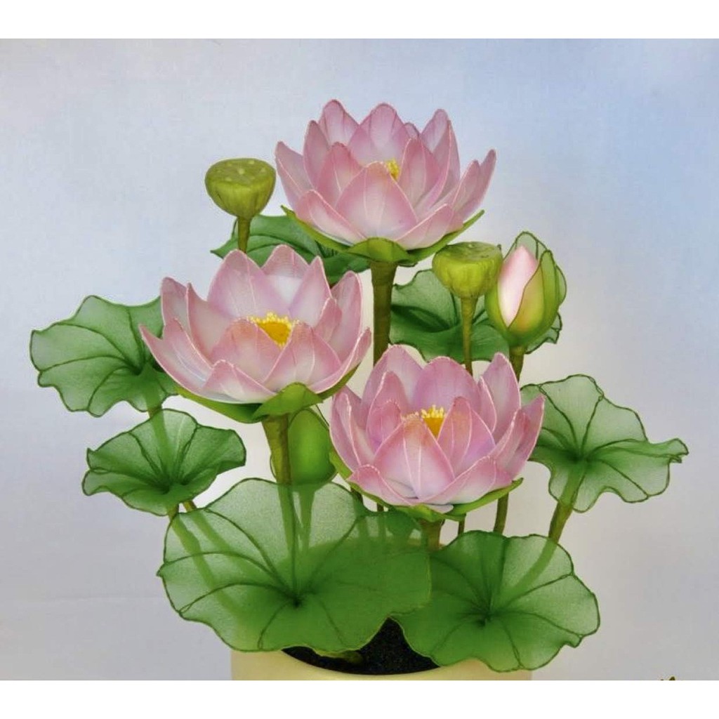 BÚP HOA SEN bạn làm bằng cách dùng bông gòn để tạo hình dáng và bọc voan bên ngoài, thao tác này đòi hỏi sự khéo léo và tốn thời gian để làm được những nụ hoa sinh động giống như thật