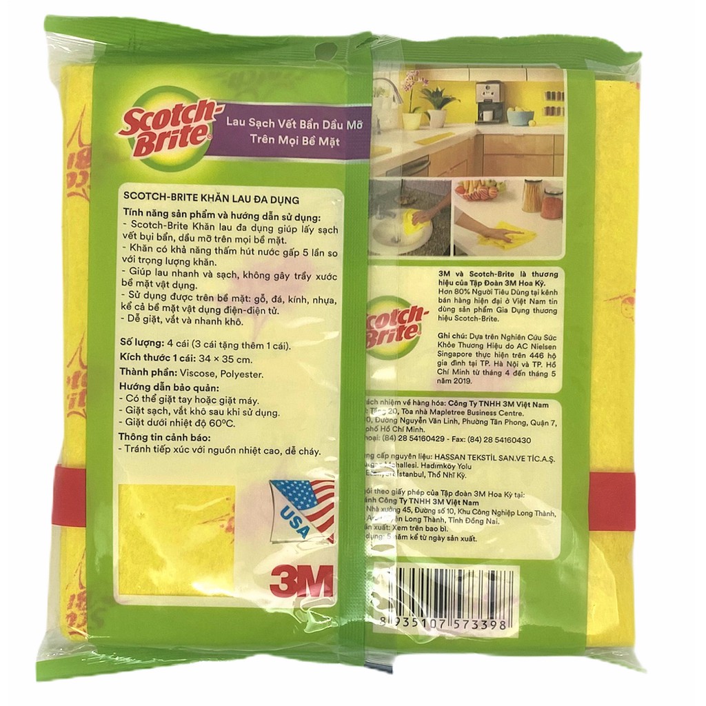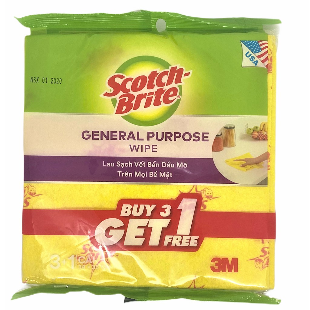 Nhà cửa & Đời sống > Dụng cụ chăm sóc nhà cửa > Khăn vệ sinh || Gói 4 cái khăn lau đa dụng không trầy xước 34x35cm Scotch-Brite 3M - siêu thấm hút, siêu sạchCòn hàng