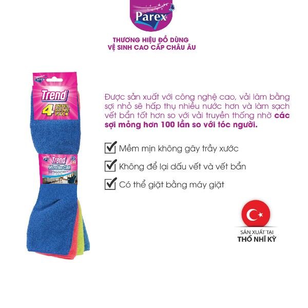 Nhà cửa & Đời sống > Dụng cụ chăm sóc nhà cửa > Khăn vệ sinh || Gói 4 khăn lau tiện lợi Trend Microfiber dài 38cm x rộng 28cmCòn hàng