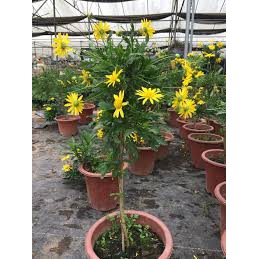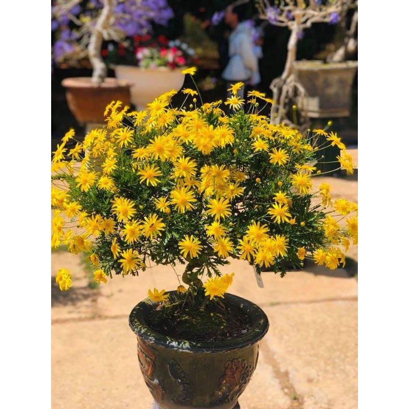 - hoa cúc thân gỗ (cúc trường thọ - cúc vạn niên) trưởng thành -- giống cây lâu năm- giống cúc thân gỗ là loại cây ưa nắng, giống như giống hoa cúc thông thường, hoa của chúng có màu vàng bắt mắt. Điểm khác biệt là các cánh hoa mọc chi chít với nhau nhìn giống như một ngôi sao nhỏ có màu vàng vô cùng độc đáo, ấn tượng.