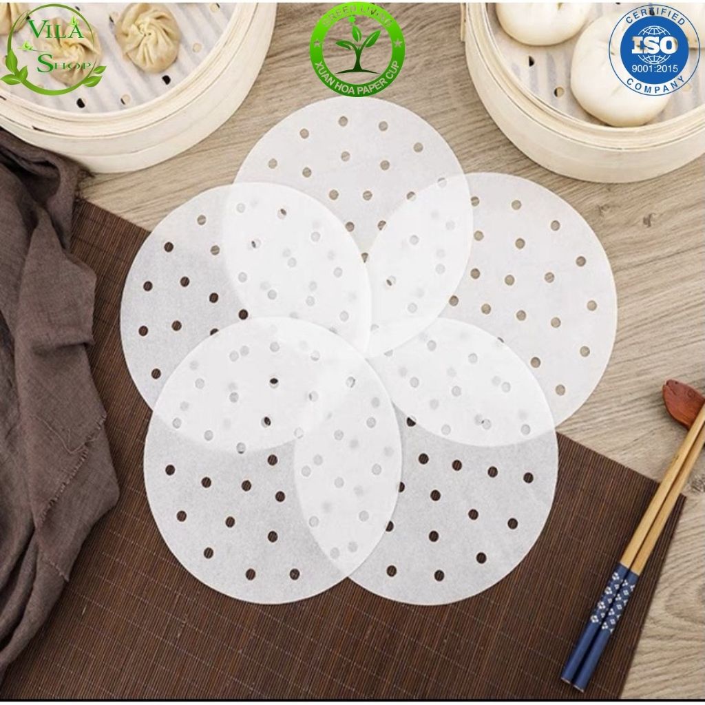 Gói 50 Tờ Giấy Nến ĐỤC LỖ Tròn XUÂN HOA Dùng Cho Nồi Chiên Không Dầu, Lót Xửng Hấp, Thấm Dầu Ăn Size 22cm