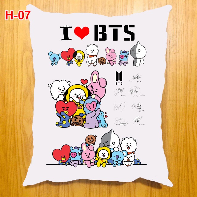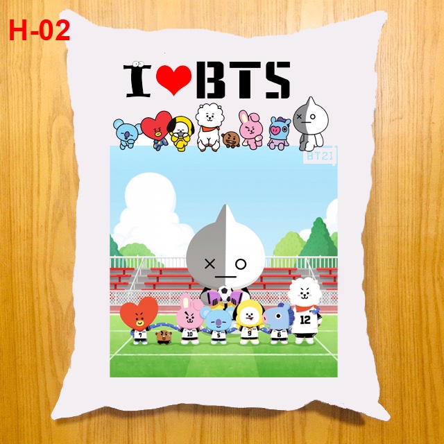 Gối bông BTS, BT21 in rõ bền đẹp, giặt không phai màu (40x50cm)Kích thước gối 40x50cm