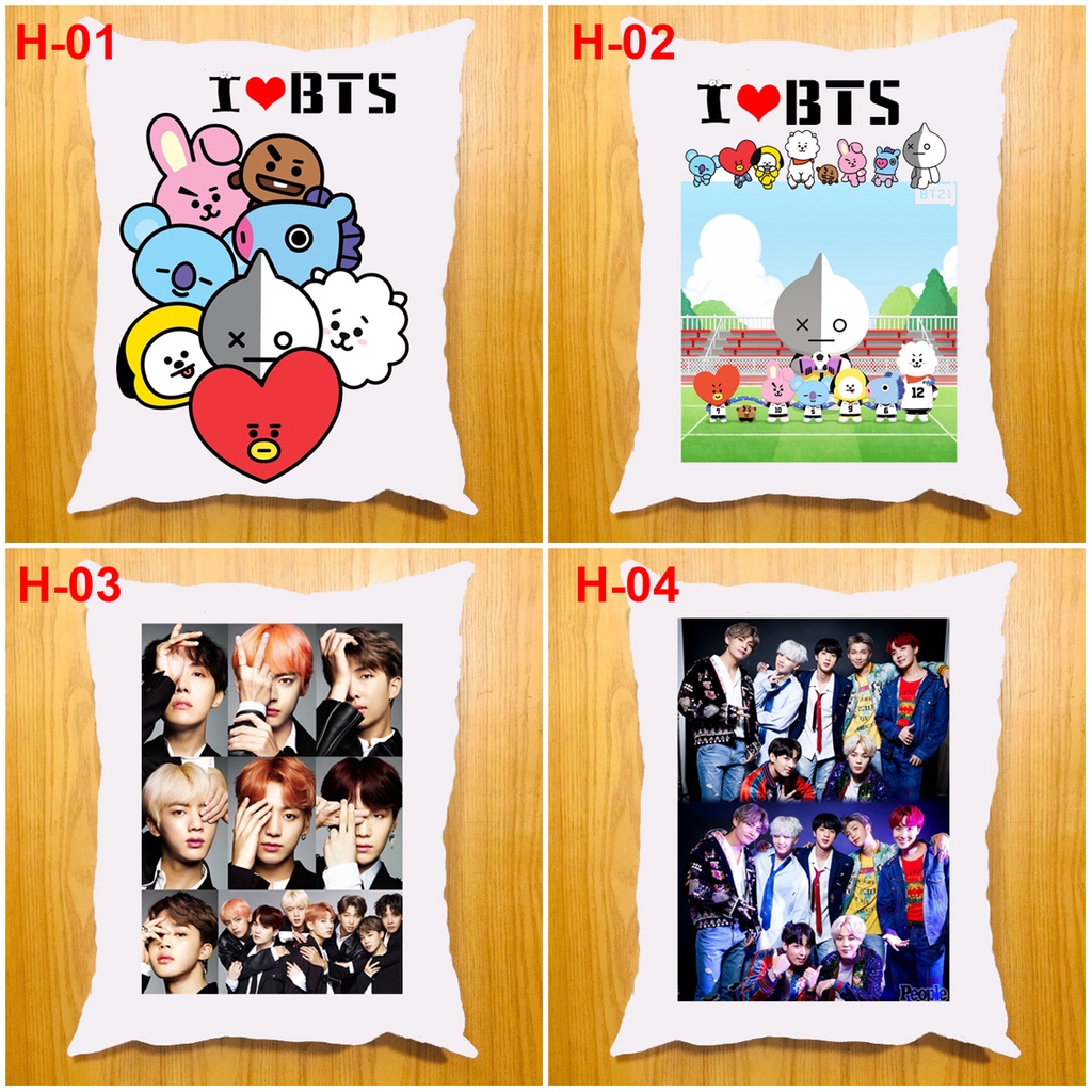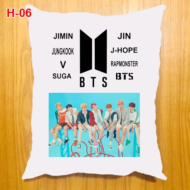 Gối bông BTS, BT21 in rõ bền đẹp, giặt không phai màu (40x50cm)