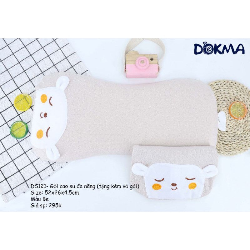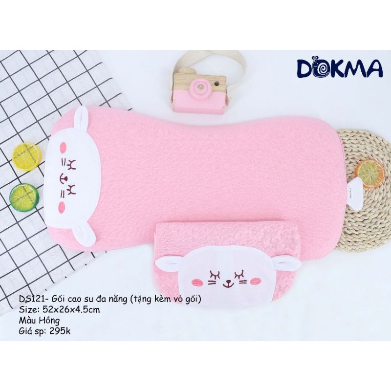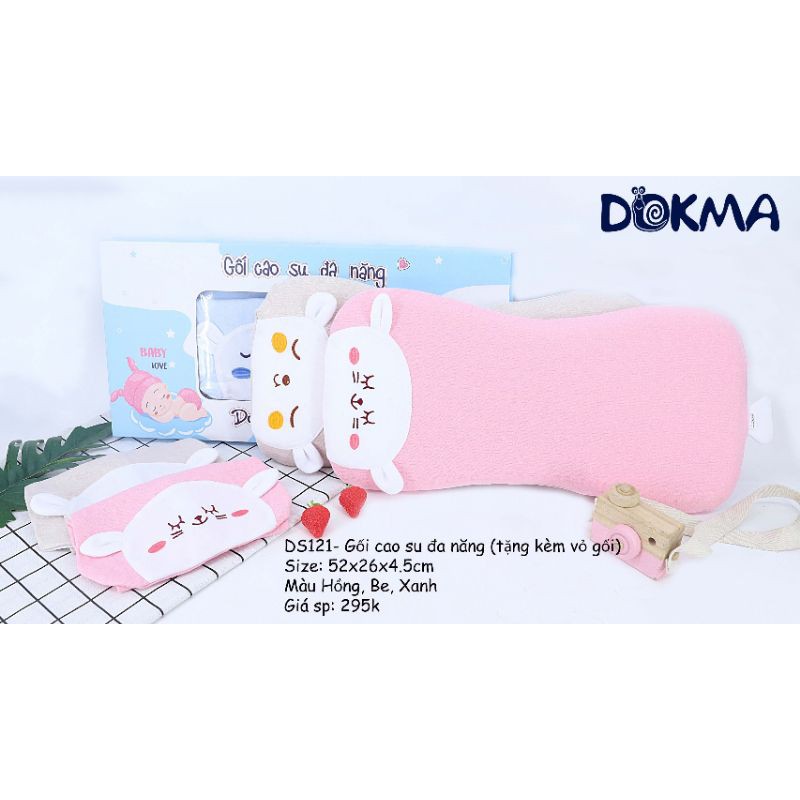 Gối cao su đa năng Dkma (Ds121)( Tặng kèm vỏ gối) ,.Size : 52x26x4.5cm. Màu : xanh . Hồng .Xám .Giá :295k .*Vỏ gối mềm mại ,thấm hút mồ hôi ,đêm lại giấc ngủ em ái ,thoáng mát cho bé yêu . * Ruột gối mềm mại với cấu trúc lổ thoáng khí đặc biệt ,cho phép không khí lưu thông dể dàng qua đệm gối, góp phần tăng sự thông thoáng cho bé khi ngủ . * Vệ sinh cũng như giặt giủ : vỏ gối có thể tháo rời một cách dể dàng ,mang lại sự tiện lợi cho mẹ khi giặt và tiết kiệm thời gian khi phơi khô .* Cách giặt : tháo vỏ gối ra giặt , tuyệt đối không giặt ruột gối .Giá MTT