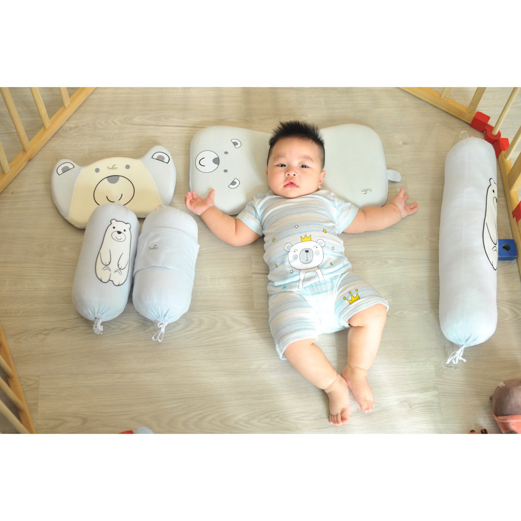 GỐI CAO SU NON CHỐNG BẸT ĐẦU CHO BÉ BAMBOO BY LILBộ gối cao su non, gối ôm Little Love vỏ Modal thêu hình gấu, hình cáo gồm: 1 gối cao su non + 1 gối ôm
