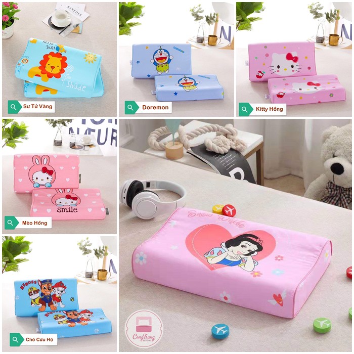 Gối cao su non trẻ em hoạt hình 3D vỏ gối Cotton mềm mát ( size 25cm x 45cm x 5cm ) hàng đẹpGối cao su được thiết kế với đường cong nâng đỡ cả đầu và cổ của bé, bé sẽ cảm giác dễ chịu thoải mái