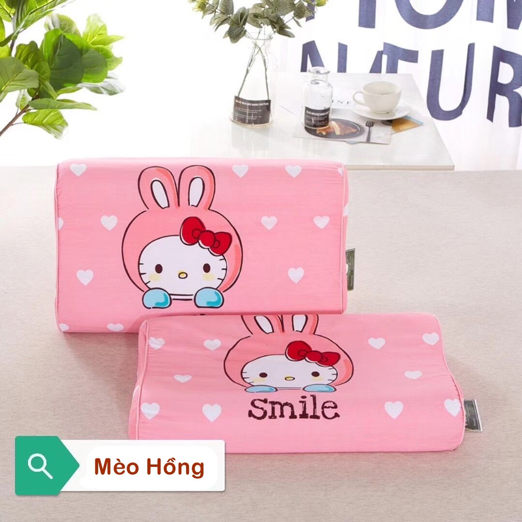 Gối cao su non trẻ em hoạt hình 3D vỏ gối Cotton mềm mát ( size 25cm x 45cm x 5cm ) hàng đẹp