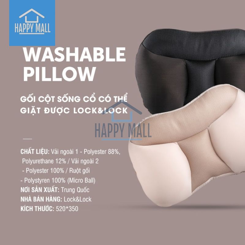 - Gối Cột Sống Cổ Có Thể Giặt Được Lock&Lock Fab 52 x 35cm với ruột gối là những hạt khí siêu nhỏ, giúp gối lún tự nhiên theo từng đường cong cơ thể và đường cong sinh lý cột sống cổ, giúp bạn cảm nhận sự thoái mái và có giấc ngủ sâu, dễ chịu.