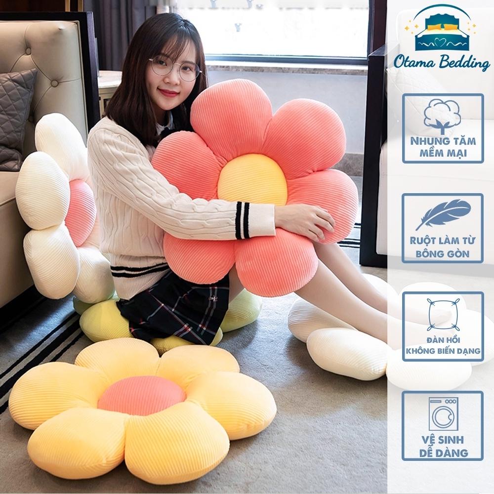 Gối đệm ngồi hình bông hoa nhung tăm mềm mại, Đệm ngồi khoáng khí êm ái hình hoa nghộ nghĩnh - Otama Bedding