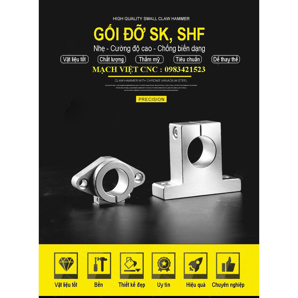 Giới thiệu Gối đỡ ray trượt tròn SK nhôm đúc nguyên khối chắc chắn