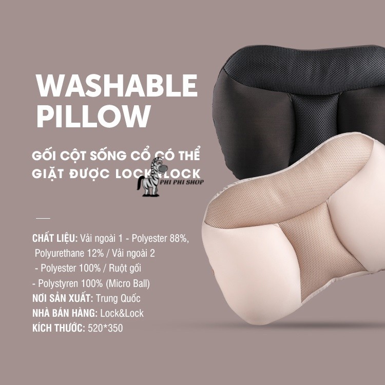 - Gối Cột Sống Cổ Có Thể Giặt Được Lock&Lock Fab 52 x 35cm với ruột gối là những hạt khí siêu nhỏ, giúp gối lún tự nhiên theo từng đường cong cơ thể và đường cong sinh lý cột sống cổ, giúp bạn cảm nhận sự thoái mái và có giấc ngủ sâu, dễ chịu.