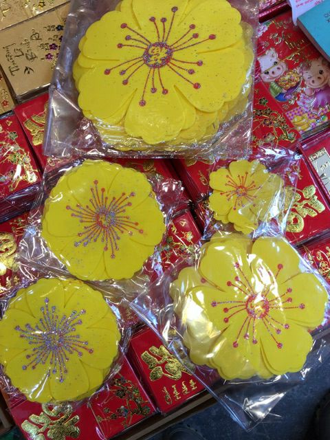 Gói hoa mai xốp trang trí cửa kính văn phòng trang trí tết