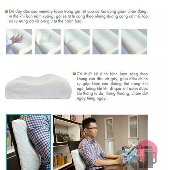 - Memory Foam 50D 50 x 30 x 10 cm là chiếc gối với thiết kế định hình lượn sóng, theo khung của đầu và gáy, giúp điều chỉnh sự gấp khúc của đường thở trong khi ngủ, luồng khí đi qua khí quản được lưu thông tự do, thông thoáng, đầu và cổ được nâng đỡ nhẹ nhàng. Vì vậy, sự tuần hoàn máu dễ dàng hơn, giấc ngủ sẽ thoải mái và êm ái hơn bao giờ hết.