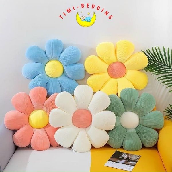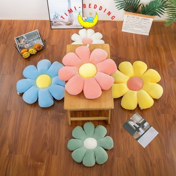 Gối ngồi bệt – Gối tựa lưng văn phòng hình hoa nhiều màu sắc đường kính 40cm, 60cm và 80cm – Timibedding