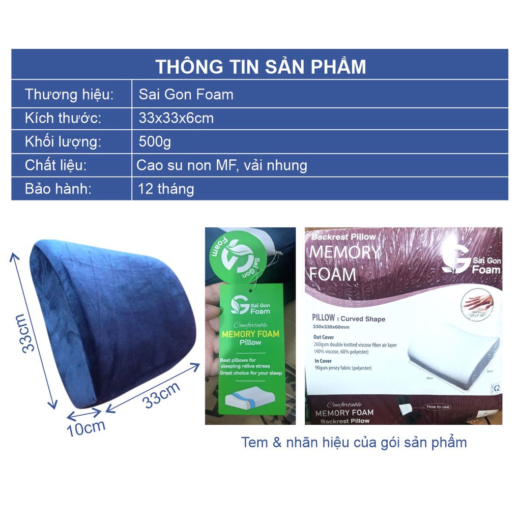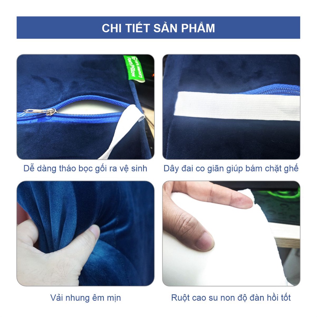 Giới thiệu Gối Ngồi Tựa Lưng Văn Phòng Chống Gù, Đau Lưng Khi Ngồi Lâu, 100% Cao Su Non Êm Mịn Dày, Dáng Công Thái Học Có Đai Gài