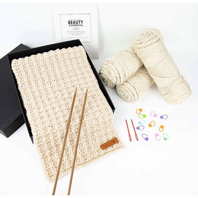 Sở thích & Sưu tầm > Dụng Cụ May Vá || Gói nguyên liệu Đan khăn len quàng cổ sợi cotton Hàn xịn quà tặng bạn trai cặp đôi nam nữ (Có video hướng dẫn cách làm)Còn hàng