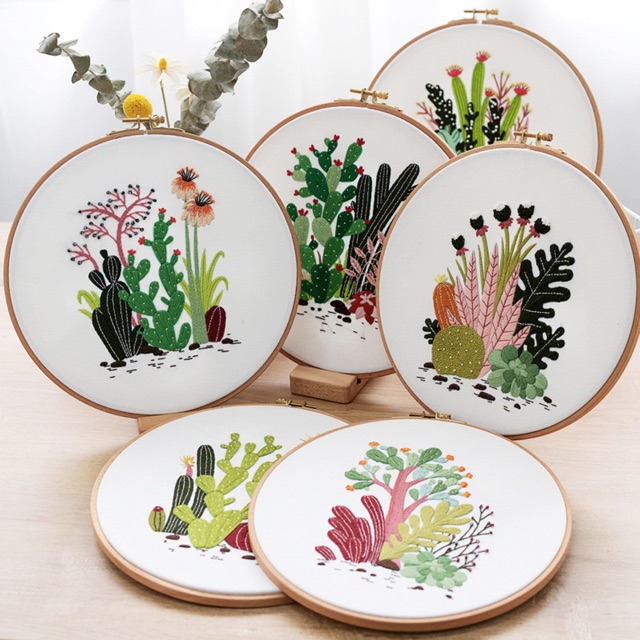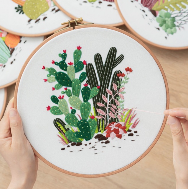 Sở thích & Sưu tầm > Dụng Cụ May Vá || Gói nguyên liệu DIY thêu xương rồng (không kèm khung thêu)Còn hàng
