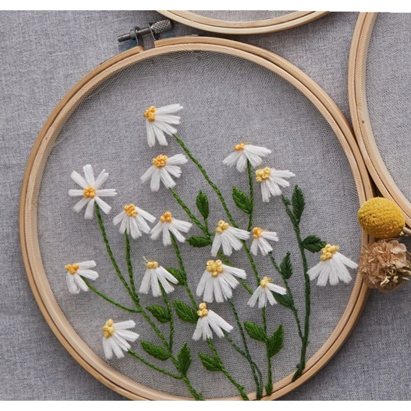 Gói nguyên liệu thêu trong suốt hoa cỏ vintage quà tặng trang trí decor phòng khung vải đầy đủ thủ công tự làm Lenmade