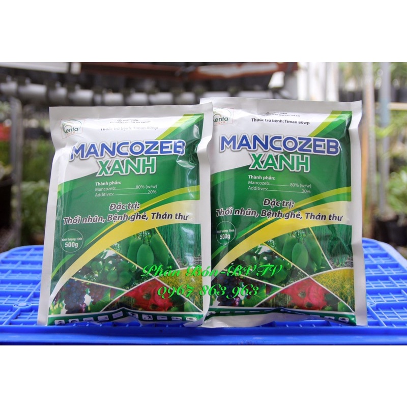 Giới thiệu Gói nửa ký Mancozeb Xanh(Thụy Sỹ)phổ rộng tiếp xúc trị và phòng ngừa nhiều loại nấm bệnh hại cây trồng