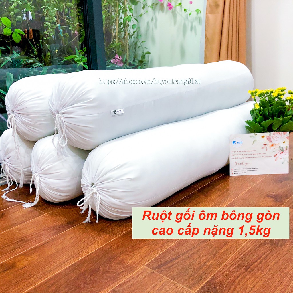 - Gối ôm dài ~95cm, nặng khoảng 1,5kg giúp gối căng tròn và độ đàn hồi cực tốt