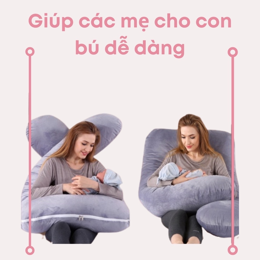 - Sau khi sinh mẹ bầu có thể sử dụng gối bà bầu để kê đỡ cho con bú đỡ mỏi vai đỡ mỏi tay, lại có thể tựa lưng êm ái nữa.