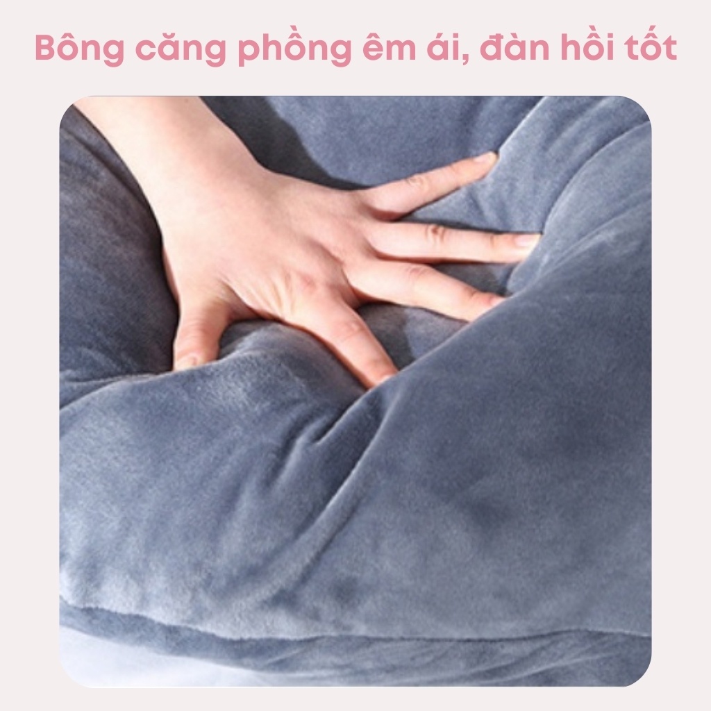 - Tên sản phẩm: Gối ôm bà bầu chữ U Massage vải nhung cao cấp, gối bầu hút chân không - Mẹ Min's Shop