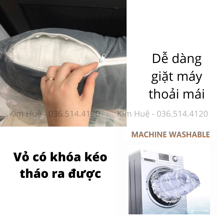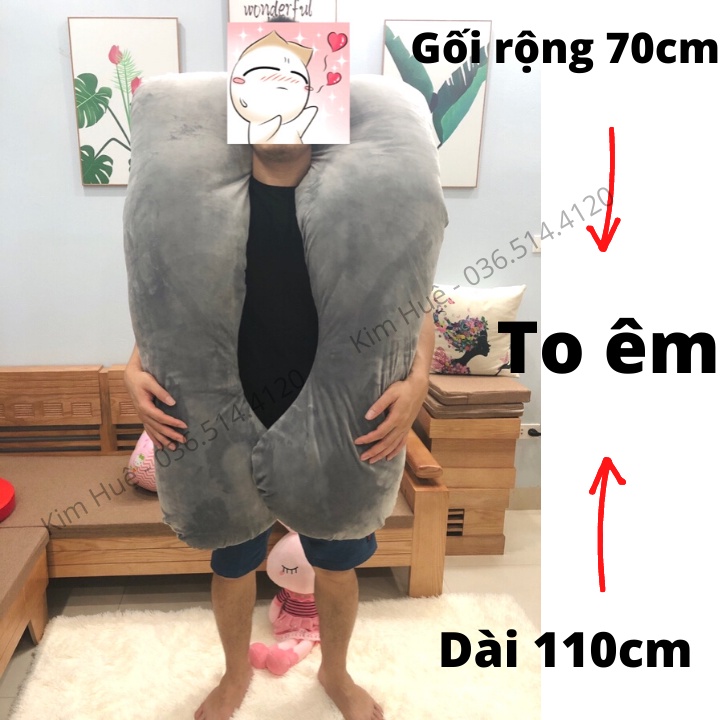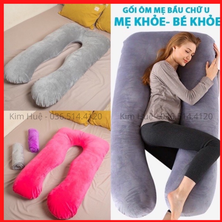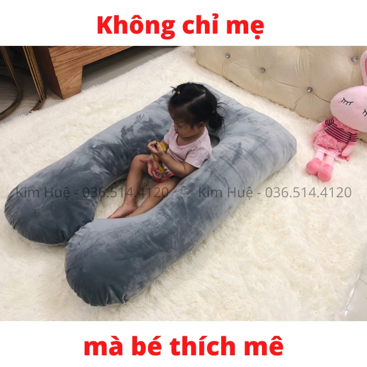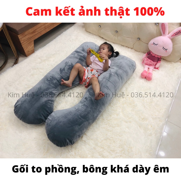Gối ôm bà bầu hình chữ U vải nhung cao cấp (bông tinh khiết dày dặn) Bảo hành 1-1