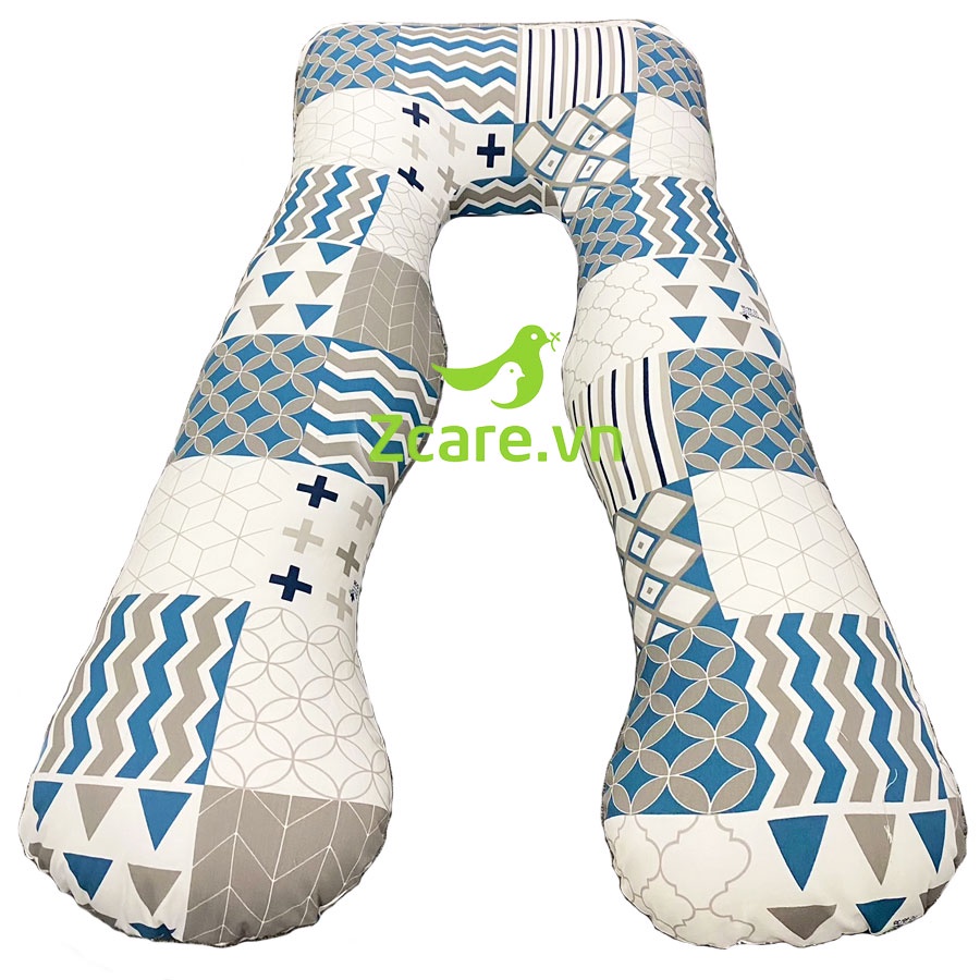 Gối ôm bà bầu ZCARE ô vuông tam giác xanh