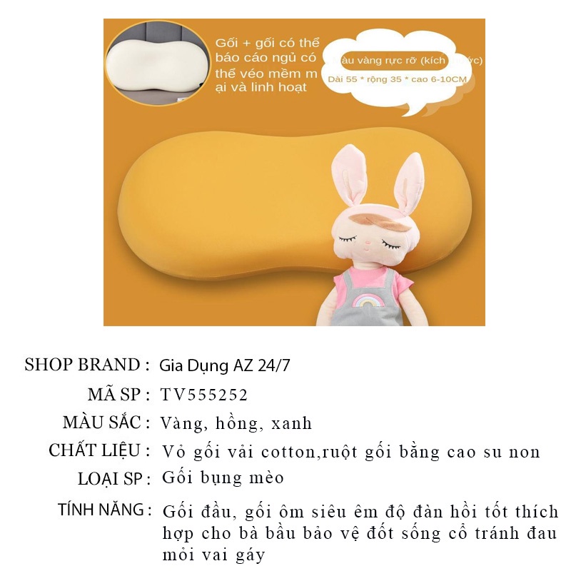 Gối ôm cho bé bà bầu gối bụng mèo tựa đầu giường mềm mại đàn hồi tốt bảo vệ tốt đốt sống cổ tránh mỏi vai gáy AZTV555252💟 Thông tin sản phẩm: