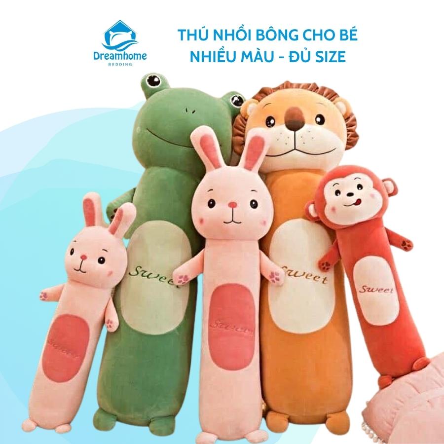 Gối ôm cho bé hình thú thỏ khỉ ếch sư tử vải nỉ mềm mịn an toàn cho bé ôm chơi ngủ Dreamhomebedding