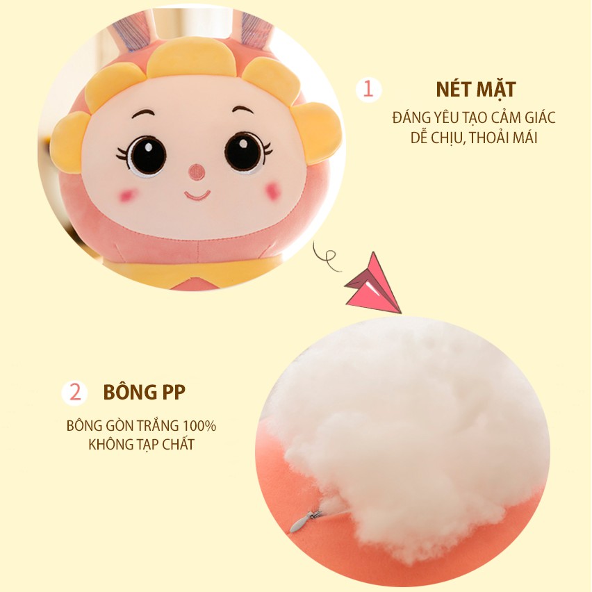 - Bông nhồi bên trong 100% là bông gòn 3D trắng tinh khiết loại 1, độ đàn hồi tốt, an toàn sức khỏe