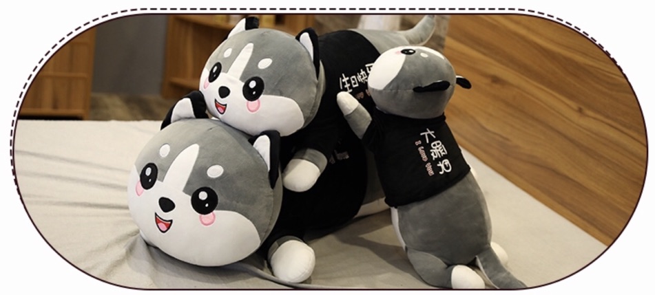 Giới thiệu Gối ôm chó xám mặc áo nhiều kích thước