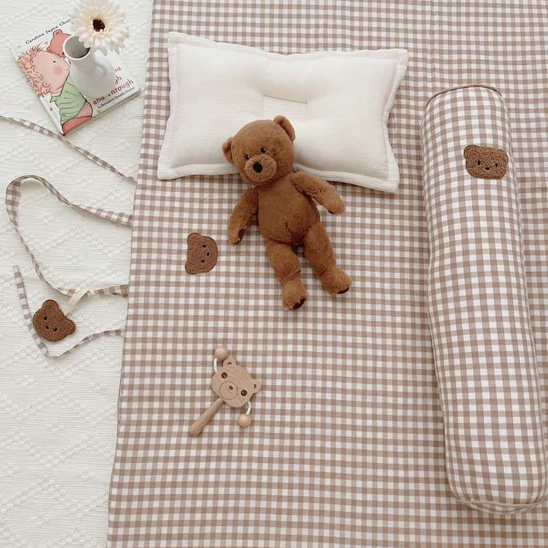 Gối ôm Cotton cao cấp Hàn Quốc họa tiết hình gấu nâu thêu dễ thương cho bé-BaByC