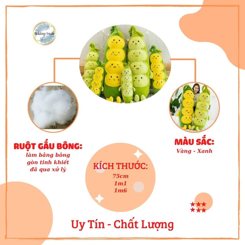 Giới thiệu Gối ôm, Gấu bông hình Đậu Hà Lan chất bông cao cấp mềm mại, loại xịn giúp ngủ ngon, thư giãn