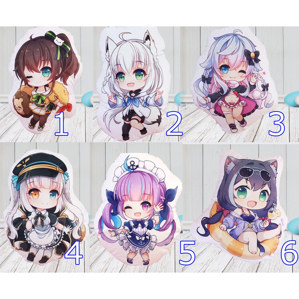 gối ôm gấu bông in 2 mặt chibi hololive vtuner Anime Vtuber Hololive Youtuber Kagura Mea Nana Minato Aquakích thước khoảng A3 33x45cm