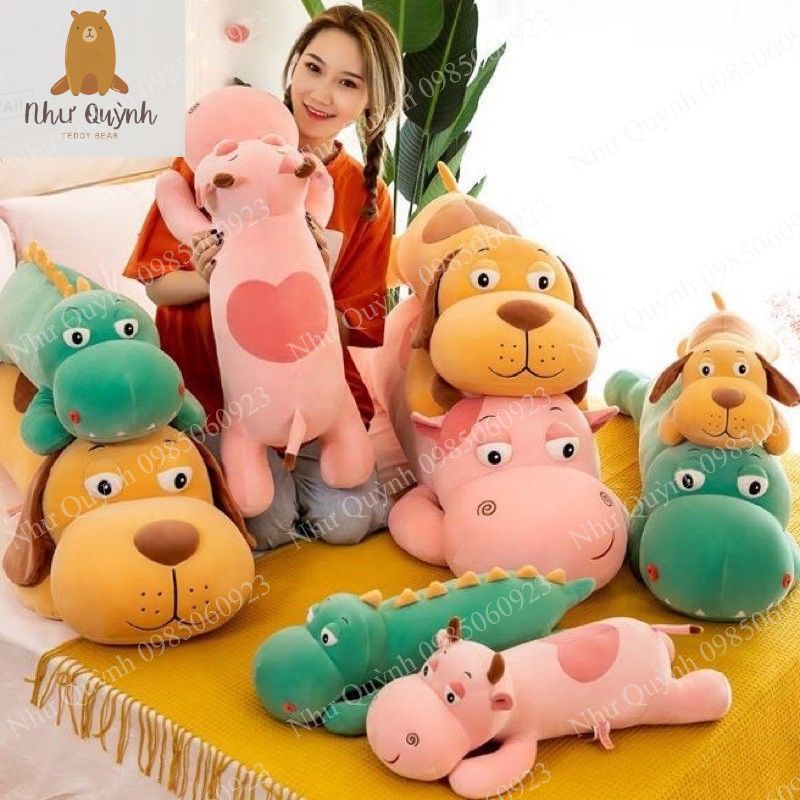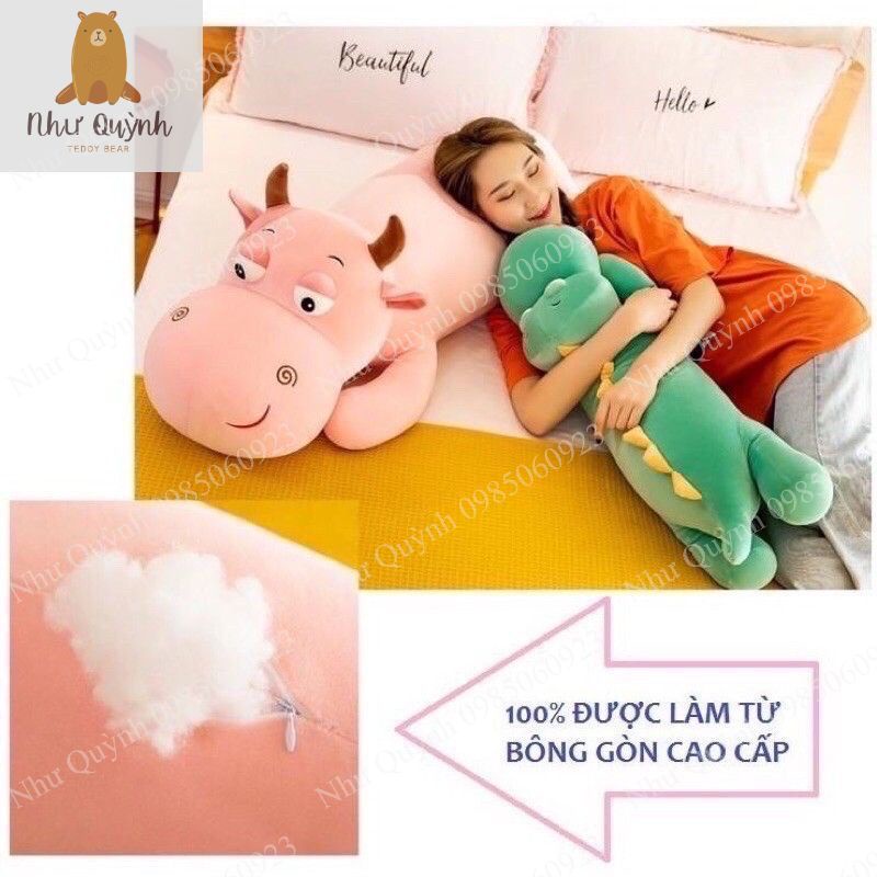 Gối Ôm Gấu Bông Trâu Chó Khủng Long Vải Nhung Co Dãn 4 Chiều Hàng Cao Cấp Đủ size 55cm 80cm 1m 1m2