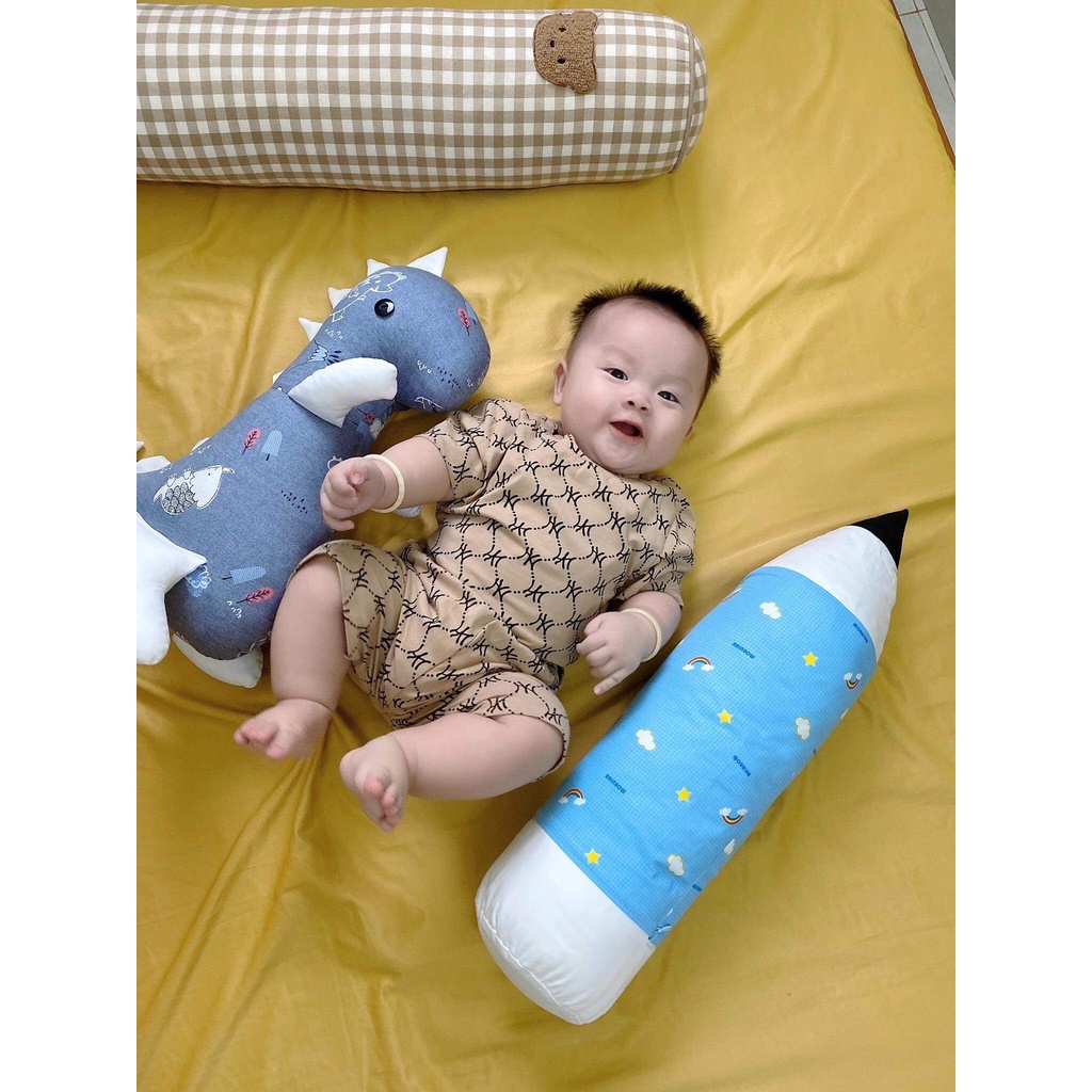 THOẢI MÁI VÀ ĐA DỤNG – Ngoài để bé ôm, gối bút chì còn có thể dùng gác chân, hoặc gối nằm mà không lo trượt. Bố mẹ cũng có thể sắm hai bé để làm gối chặn hai bên, tránh cho bé giật mình khi tập ngủ riêng.