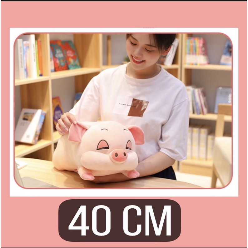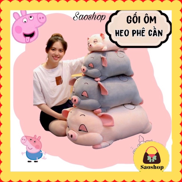 Gối ôm hình thú con heo béo mắt hí cute thú nhồi bông con lợn ngủ béo ú kích thước 35cm 55cm 80cm