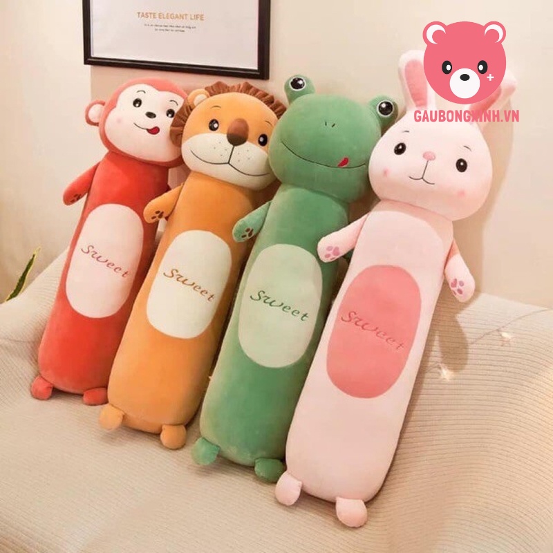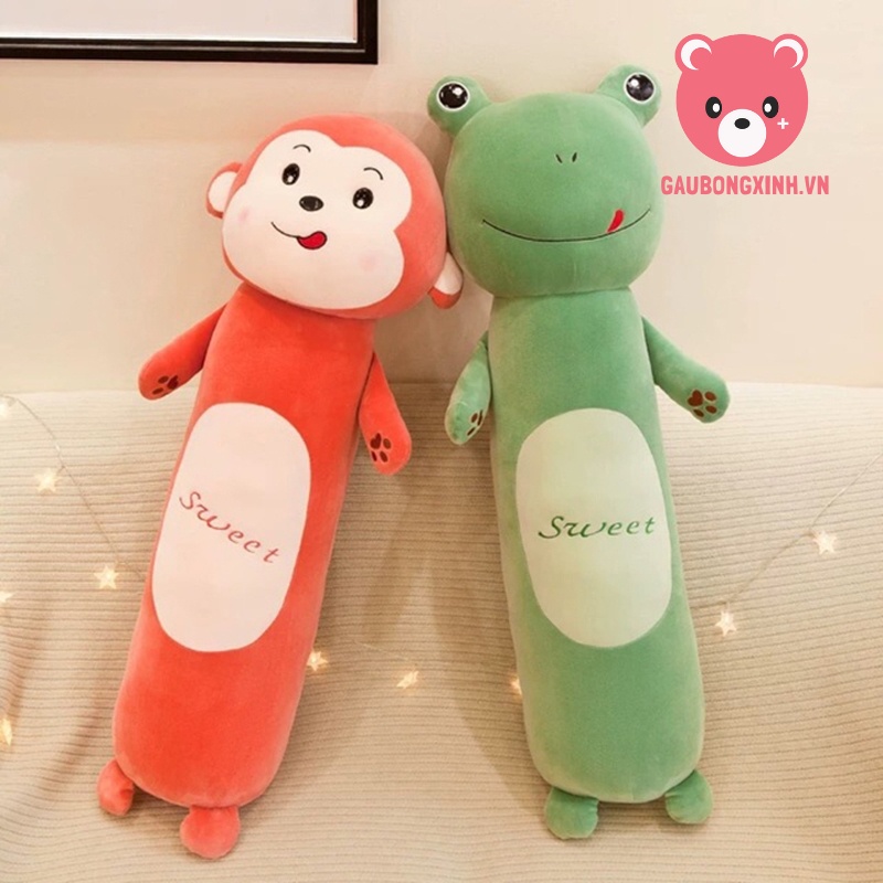 Giới thiệu Gối Ôm Hình Thú Dài 50cm - 1m2, Gấu Bông Hình Động Vật Cute Thỏ Ếch Khỉ Sư Tử Dành Cho Bé Siêu đáng yêu