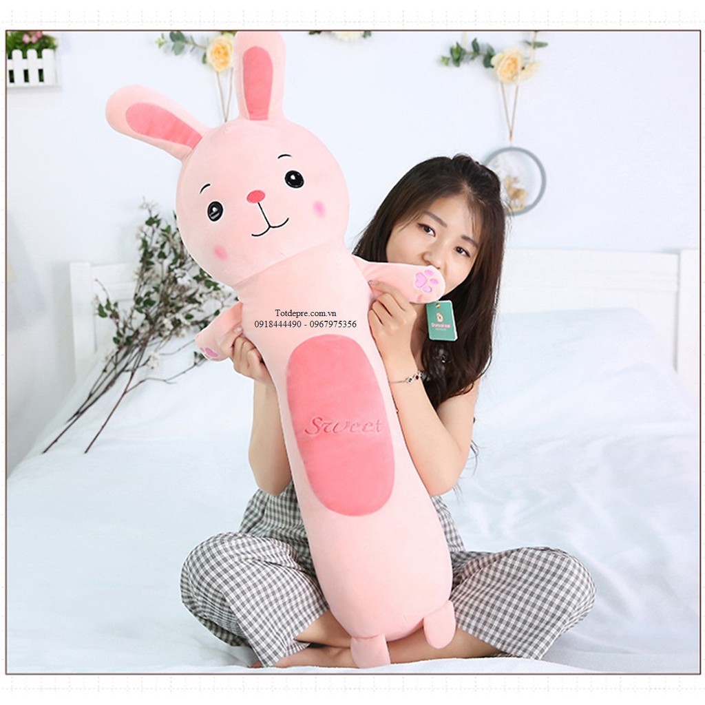 Chiều dài 70cm (không đo tai là 65cm). Kích thước phù hợp làm gối ôm cho các bé 2-6 tuổi, cũng là đồ chơi thú bông cho bé chơi.