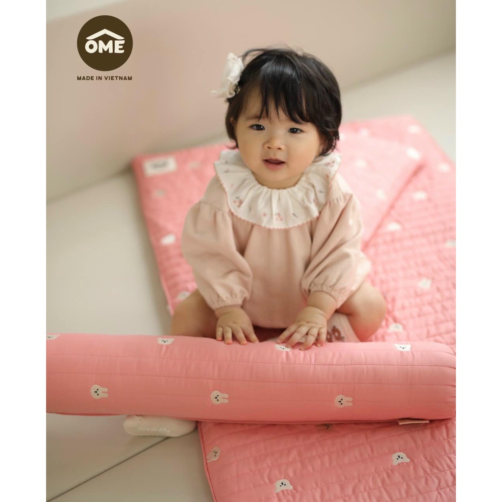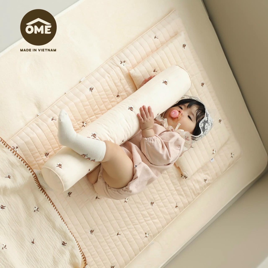 Gối ôm kiêm gối chặn bông cho bé vỏ thêu cao cấp OME (60*10) [sishibaby] - Tặng kèm túi đựng